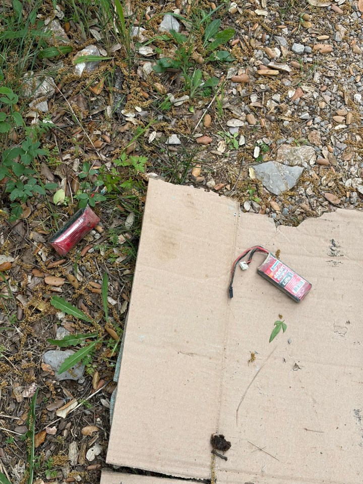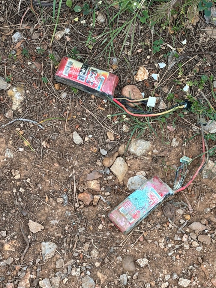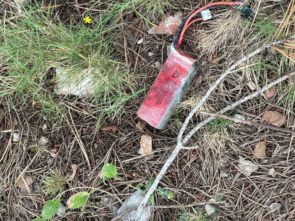 Un peu plus loin je fais un constat qui me désole : une kyrielle de batteries lipo qui doivent provenir de drones. Le chemin passe entre des arbres de type pin et doit se prêter à des parcours sinueux pour amateurs de vol en FPV. Amateurs … je dirais plutôt sagouins car d’une part ces batteries sont des polluants, et si elles entrent en court circuit elles peuvent déclencher un feu et à cet endroit cela ne pardonnerait pas. Bref un ou des crétins pas d’autre terme …